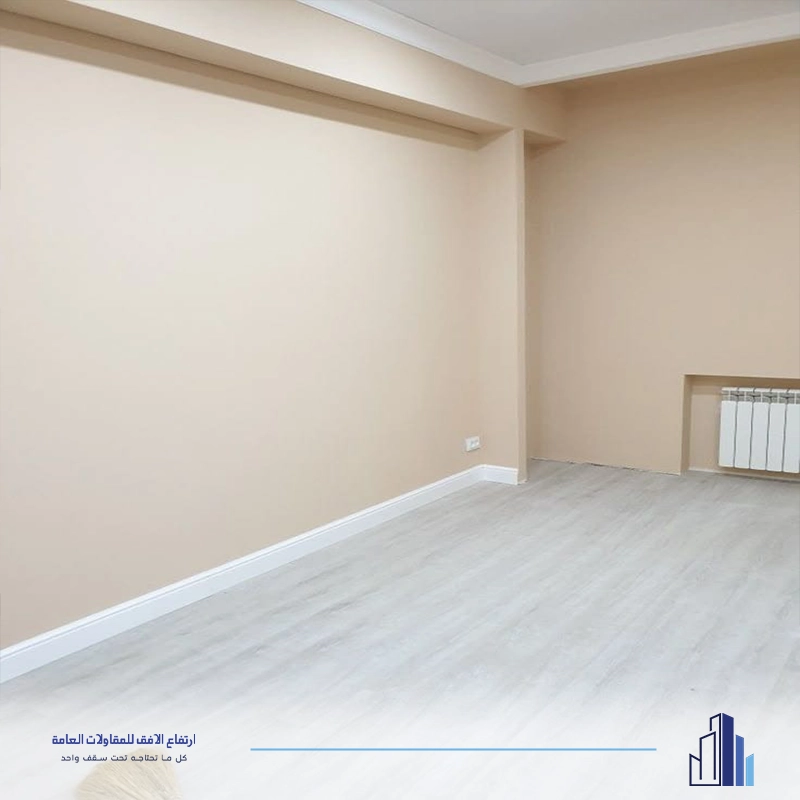 يتم تنظيف المكان وتغطية الارضيات وإزالة الدهان القديم.
